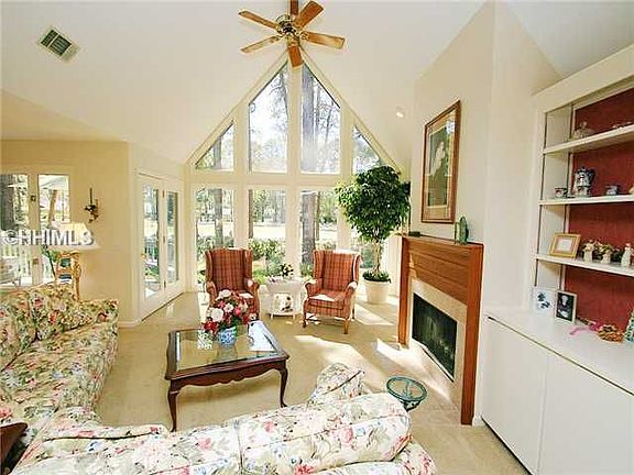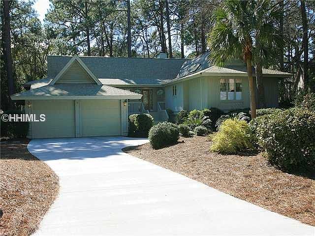 Absolutely neat-as-a-pin 3 bedroom, 3.5 bathroom home located on quiet cul-de-sac street with beautiful golf course view on #3 fairway of the Sea Pines Country Club course. This elevated, single-level design features great room with loads of glass, built-in's and fireplace, granite kitchen/breakfast room with adjacent family room featuring built-in's, large master suite with light/bright/lavish bath, 2 en-suite guest-rooms with private hallway...plus front porch, 2 back decks, attached 2-car garage, brand-new driveway, great storage and more! This home is a true delight & shows beautifully!(825111)