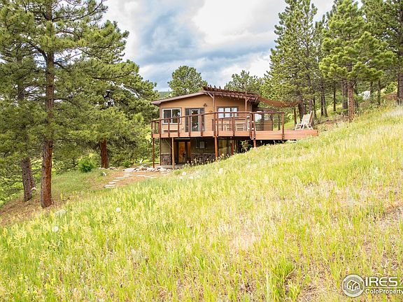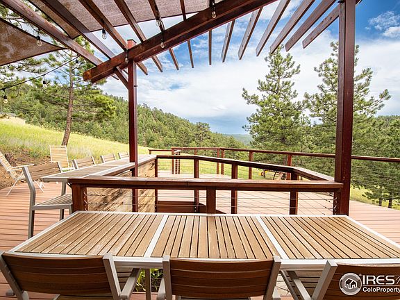 Unwind and rest in this idyllic mountain retreat, on just over an acre and only 20 minutes to Boulder, 15 minutes to Nederland, and 25 minutes to Eldora. Embrace the serenity of mountain living in the coveted community of Silver Springs, offering easy access to world class mountain biking on the Gordon Gulch trail, just minutes from your driveway, as well as hiking right out your back door. A 2 car attached garage stores all of your gear and includes a 220V ready for your EV charger. Enjoy beautiful sunsets from the large deck, abundant birds, wildlife and expansive mountain views. Cool off in the private pond exclusive to Silver Springs residents (dogs welcome!). The main level interior was just recently painted, and the walkout lower level has new wool berber carpeting. The open floor plan flows effortlessly with hand-scraped oak floors underfoot on the entire main level and enjoys abundant natural light. The living room offers sweet indoor / outdoor living with a wood clad patio door with operable sidelites leading you out to the 5 year old composite deck, pergola, and built in dining / bar area. Downstairs you'll find 2 additional bedrooms with direct outdoor access, laundry area, full bathroom and garage access. Recently improved flagstone patio/deck outside the lower walkout as well as drainage/water feature with footbridge. Easily work from home with access to several high speed internet options. This home is equipped with a whole house generator, offering peace of mind year round. Come and experience the peace that your soul yearns for in this move-in ready mountain gem.