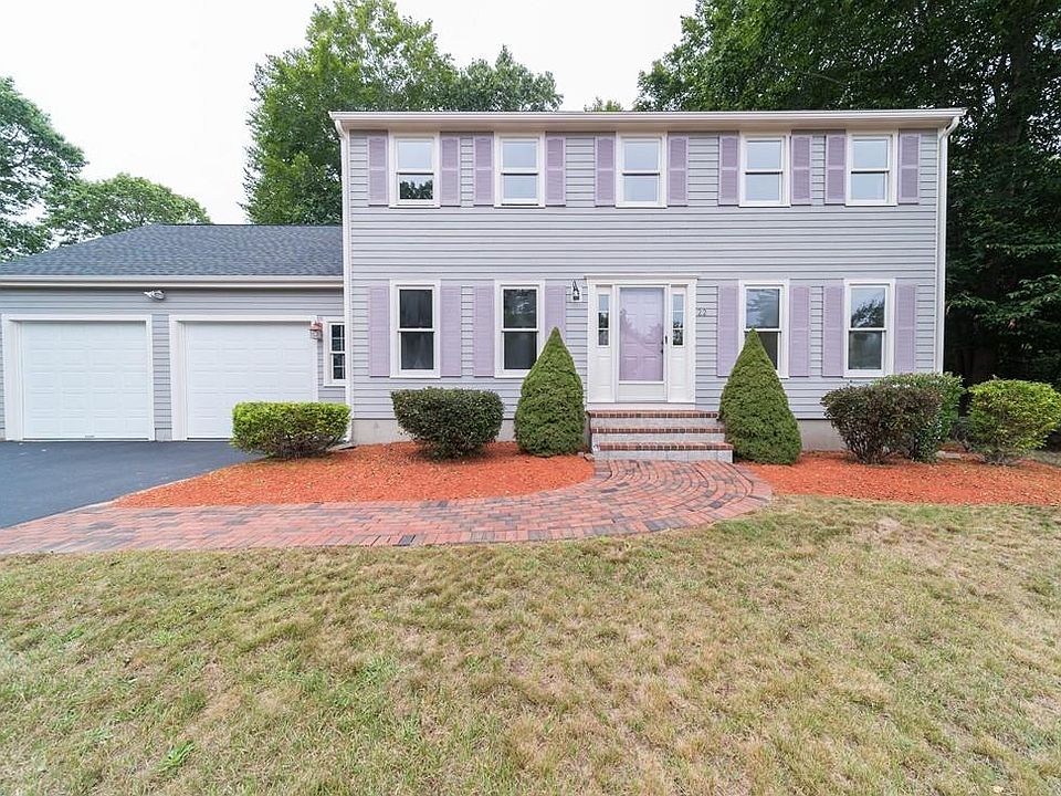 Welcome to French's Crossing! A much sought after neighborhood offering its own playground, ball field, tree lined streets, sidewalks and underground utilities. Built in 1991, this 3 bedroom center entrance colonial boasts an oversized 2 car garage (25x23), fully finished basement and huge sunroom addition leading to a private backyard with patio. Freshly finished hardwood floors, newly carpeted bedrooms and freshly painted walls beckon you to move right in. Master bedroom features a walk-in closet and dressing area. 2nd bedroom features 2 closets. 3rd bedroom overlooks private backyard. Great location for commuting, close to highway and commuter rail locations. Don't miss this one!
