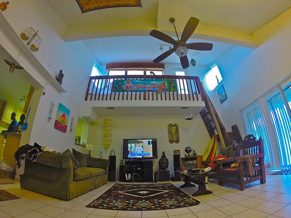 Huge living space. Huge yard. Garden, edibles, covered deck on the second story, garage/storage space, washer and dryer room.