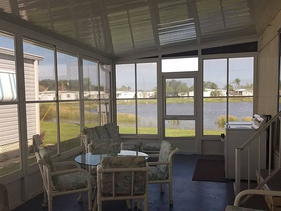 Just Listed $29,900 Turnkey This is a large turnkey home with waterfront views. This lovely home has 2 bedrooms and 1.5 bathrooms. Side driveway, carport, storage shed and a large enclosed lanai. The lanai is new in 2018. New slider windows and nicely painted flooring. Washer and dryer are conveniently located in the lanai. Enter the double sliding glass doors into the open kitchen and living room. The kitchen has plenty of cabinet and counter space. Enjoy your meals looking over the lake and your coffee sitting at the breakfast bar area. The living room is spacious with nice carpeting. This home has cathedral ceilings. The guest bedroom is roomy with a half bathroom. Extra storage in the hallway. The main bathroom is large with a step-in shower. Master bedroom has a queen-sized bed, night stands and a dresser with plenty of room to still move around. Large double-sided closet. New radiant barrier 2018 with R14 insulation. HVAC pipes and HVAC unit under home was redone in 2014. New hot water heater 2019. New 3/4 subflooring from living room through the master bedroom 2019. This is a lovely home in a great community. Call today to make this your Florida dream home!! ACT FAST & CALL TODAY!! Don't forget to ask about the FINANCING available on this home. Coach House is an age qualified resort community of manufactured / mobile homes. The Coach House has 2 Recreation halls - one attached to the pool area with pool tables and ping pong. A very nice relaxing pool overlooking the lake, 4 fishing ponds, an exercise room, laundromat, work shop for the residents, Boat & RV storage for just $30 per month, shuffleboard and lots of clubs and activities. The park has a very warm community feel. The lot rent in The Coach House is based on the homes' location. Very low rates for this type community that is so well maintained!! Not only does the monthly rent cover all of the amenities of the community listed above, it also covers almost all other monthly expenses such as; water, sewer, trash pickup, all property taxes, lawn maintenance. . .pretty much every monthly expense except electricity and internet. The current lot rent on this home is estimated at $508 per month. All listing information given to us is considered appropriate and reliable but always recommend Home Inspections by independent companies who have a background and thorough understanding of manufactured homes. We cannot guarantee the accuracy of information given to us or the condition of the home. Lot rents are determined by the community office not our company.
