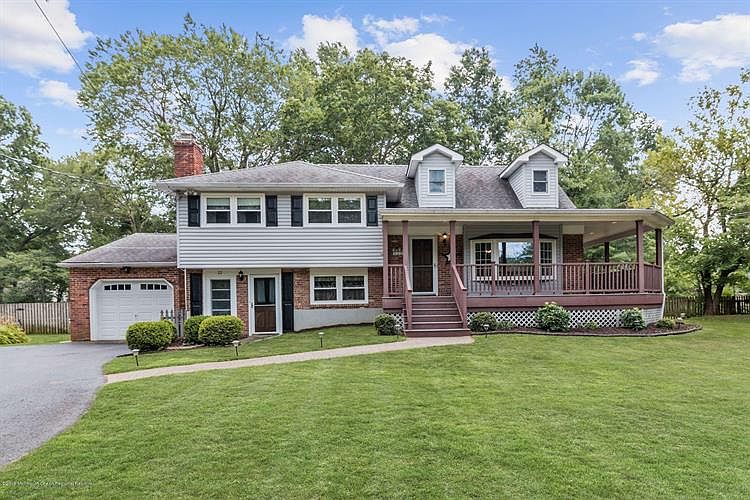 Welcome to this well maintained home in Little Silver! Wrap around, covered front porch to enjoy from dawn to dusk. Spacious living room with bay window and dining room with slider to sunroom with vaulted ceiling. Updated kitchen with Corian countertops and stainless steel appliances. Hardwood floors throughout most of the house. Family room with fireplace as well as laundry half bathroom, utility room and separate entrance with mother daughter possibilities. Master bedroom on it's own floor with sliding door leading to a dressing area and additional closet space. Full bath and bonus room (office, nursery, bedroom, etc.) on same private floor as master bedroom. Additional bedrooms are a generous size. Garage with storage above. Only a half mile to the train and close to the Jersey shore!