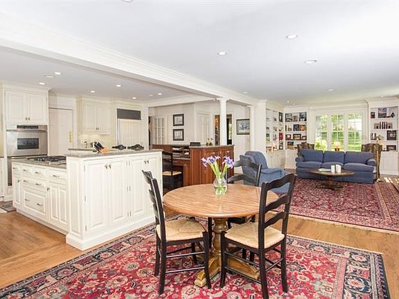Deerbrook is a stunning 5 bed home with an open, bright floor plan and possessing timeless elegance. Situated on a quiet country road, there are 5 private acres to enjoy from the deck or pool patio. Meticulously updated and cared for, this is the right home for your lifestyle. Generous, sunny rooms offer views of a beautiful heated concrete pool and a screen of mature trees. Thoughtfully remodeled kitchen with 2 islands and all the bells and whistles, opens to the stylish family room with its built-ins, gas fireplace and refinished hardwood floor. Enjoy the study with its French doors, built-in cabinets designed for a true office and the lighted display shelving. Delightful banquet size dining room has wonderful wainscoting and bay window. Remarkable living room is front to back with a gas fireplace.