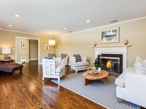 Wonderful ranch at the top of a quiet cul-de-sac with a beautifully renovated eat-in kitchen, three luxe, new full baths, over-sized living room with fireplace, level .85 acres, four season heated sunroom overlooking the huge backyard, finished basement (not included in square footage), fourth bedroom with full bath is perfect for a guest bedroom or office, plus attached two-car garage. Too many high end upgrades to list and all within a short distance to the shops and train station!