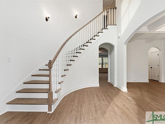 Make the perfect entrance with this grand curved staircase highlighting the two-story foyer. First floor flex room or office space, great room with electric fireplace, oversize granite island in the kitchen, coffered ceilings in the dining room, purchase your exquisite Faircloth Home today! Includes a first floor bedroom with an adjacent full bath.