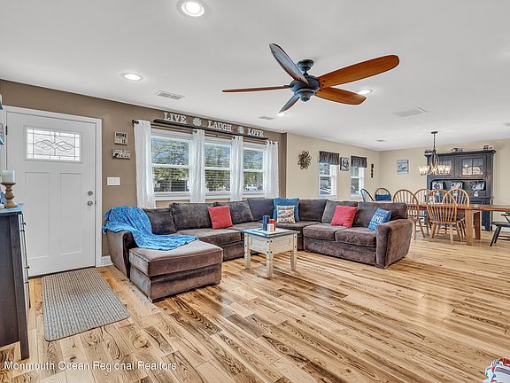 Sprawling 3 bedroom, 2.5 bath ranch in the Birchwood Park section of Brick! Open floor plan w/ spacious kitchen, casual dining area flooded with light from the many windows overlooking the deck and rear yard. Oversized lot 95x121x119x133! Convenient location near schools, shopping centers and GSP and Route 70.