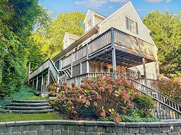 This spacious 5-bedroom, 3-bathroom home is located in a quiet enclave off Main Street, Vineyard Haven. Just half a mile to the vibrant restaurant and shopping scene in the village, and even closer to the library, Owen Little Beach, and Yacht Club. Thoughtfully designed across three finished levels featuring hardwood floors, a cozy fireplace, and a seamless layout, the home is ideal for entertaining. The design is casual but practical, evidenced by the well-appointed kitchen which offers direct access to the rear deck for an eat-in or eat-out option. With separate finished living quarters on the garden level, the home easily accommodates guests, multi-generational living, or a growing family. The expansive deck invites morning coffee, summer gatherings, and peaceful evenings surrounded by nature. Mature plantings bloom on stone-scaped retaining walls and evergreen trees provide ultimate privacy. You are just moments from the harbor, shops, and ferry, and yet this property also offers seclusion and privacy - this is a rare combination in this price point.