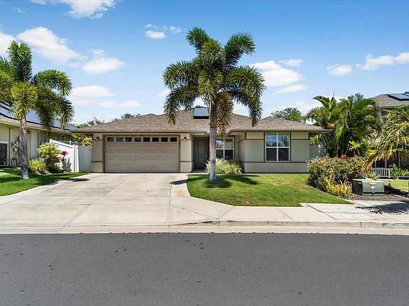 GOLF COURSE FRONTAGE - Meticulously maintained residence located on the 3rd hole of the Maui Lani Golf Course. Aloha & welcome to the Parkways at Maui Lani! This is the highly sought-after "Waialae" single-level floor plan, 3 bedrooms, 2.5 baths, boasting over 2000sf of living area, 9-ft vaulted ceilings, spacious great room with a separate dining area, Island kitchen, laundry room with utility sink and ample storage, large covered lanai perfect for entertaining. Thoughtful upgrades include tile floors in the kitchen, baths, laundry room, and entry areas, with upgraded carpet and padding for superb comfort in the bedrooms. Porcelain tile shower inlays, Corian counters in kitchen and baths, GE stainless steel appliance package with French door refrigerator, LG Smart washer and dryer, solar water heating, four split air conditioning units, customized window treatments, and rain gutters around entire home. Recently added were the designer ceiling fans. Gorgeous landscaping with irrigation and sprinklers, widened driveway, vinyl fence on the sides and wrought iron fencing to enclose the backyard completes the country club feel. Centrally located, minutes from shopping, dining, airport, and STEM schools. Call your favorite REALTOR today to make an appointment. Mahalo!