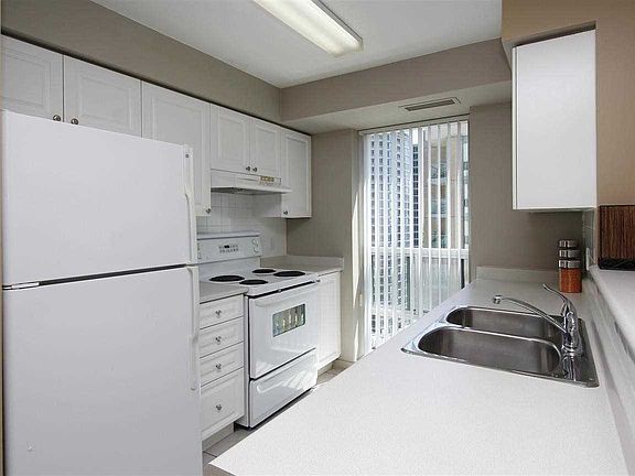 Sunfilled 1 Bedroom Corner Unit W Floor To Ceiling Windows In Kitchen, Walkout To Full Balcony W Wonderful West View. Large Dble Closet Foyer. White Kitchen W Ceramic Floors/Backsplash, Great Location, Walk To Subway, Shopping, Theatres, Banks And Restaurants.