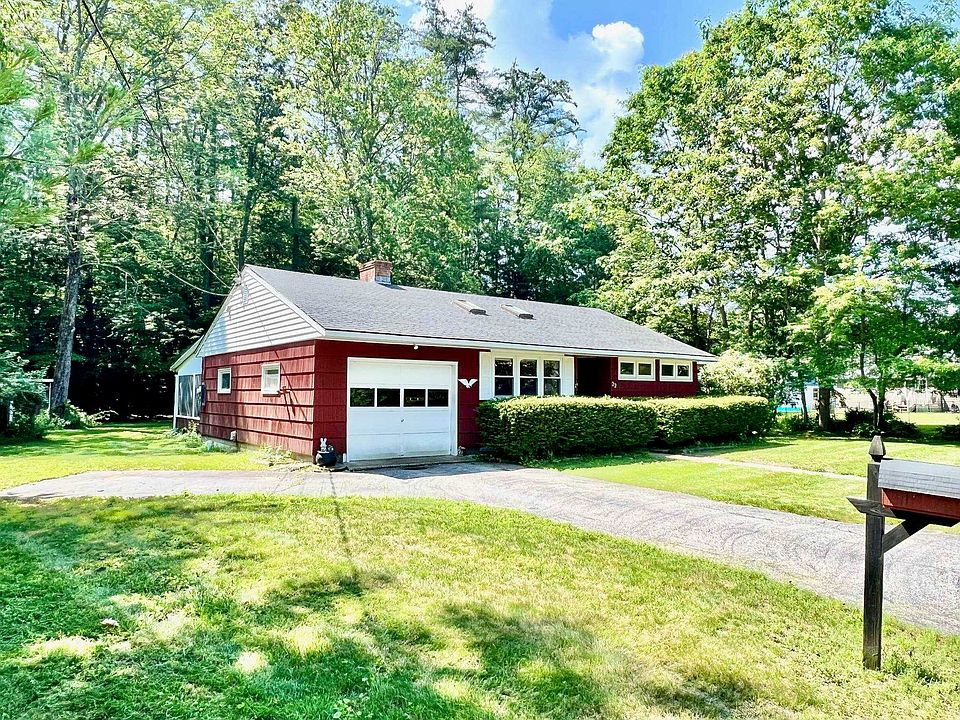 Located in an excellent part of Keene NH, this 2-BEDROOM, 1 BATH home has lots of possibilities. The HUGE back yard includes, maple trees, wooded area, 2 storage sheds, and lots of open space for sports, or entertaining. Parking features a one car attached garage and two additional parking spots on the paved driveway. Inside you enjoy vaulted ceilings, bright skylights, breakfast nook, custom pine shelving, brick fireplace, separate laundry space (upstairs) and two large bedrooms with plenty of closet space. The basement is 1/2 concrete floor and 1/2 dirt crawl space. There will be a BRAND NEW base-board hot water furnace installed before closing. Bring you best HGTV ideas and make this place your own!