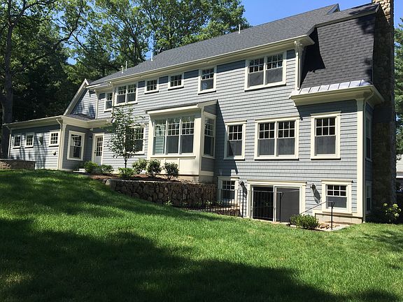 Stunning stone and shingle style Colonial in the heart of desirable Country Club neighborhood features impressive details throughout. This beautifully constructed property offers exquisite finishes and exceptional mill work. Gourmet kitchen with high end appliances, center island and dining area opens to inviting family room with magnificent stone fireplace. Dining room includes hardwood floors, coffered ceiling and butlers pantry. First floor office/ bedroom with fire place and full bathroom offers flexible floor plan. Oversize mudroom and cubbies helps keep belongings neat and tidy. Luxurious Master Suite includes spa like bathroom, fireplace and double walk in closets. Incredible third floor guest suite features full bathroom and sitting area. Fabulous walk out lower level with natural light includes game room, playroom, exercise room and full bath. Breathtaking lush landscaped grounds will include patios and built in fire pit.
