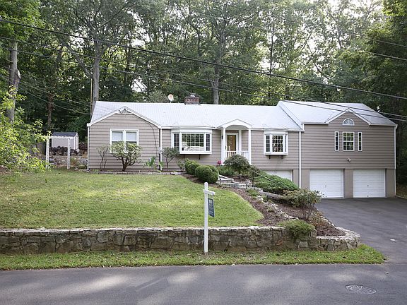 Welcome to this enchanting and well maintained 3BR ranch in this coveted Wolfpit neighborhood 2500+ sq ft on one level with THREE distinct living areas incl front parlor bay window and gorgeous refin hardwood flrs and fireplace,just steps away to an enormous Great Room with cathedral ceiling, deck access and skylights, and then tucked away in back is your own Zen retreat family room with floor to ceiling stone fireplace and access to the back patio. You will be hardpressed to decide just which room you want to kick off your shoes and relax in most Bright master bedroom with his and hers closets, renovated hall bath, 2nd bedroom outfitted with a retractable Murphy bed for those unexpected overnight guests and a third bedroom with wood flrs and a renovated full bath. Imagine cooking up a storm in your expansive kitchen with granite cctops, pantry cabinet for extra storage, breakfast bar and access to the Great room, stainless steel appliances. This is a kitchen you won't want to leave Outdoor entertaining is a breeze with a spacious wood deck off the kitchen area and a private patio off the family room. Check out the already chopped firewood just waiting for you to stoke your two fireplaces with for our chilly New England winters Downstairs find a laundry area, exercise or storage room and three garage bays This house is customized for easy living. It has been well loved by one owner for nearly thirty years. Catch the good vibes and make the next chapter here be yours
