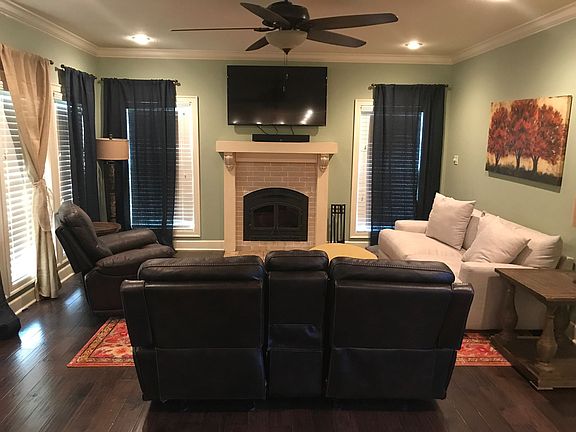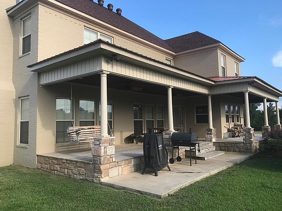 For Sale by Owner - Beautiful 2 story home 3,224 square feet, 4 bedrooms, 2.5 baths. Beautiful crown molding and hardwood floors throughout the house with tile in the bathrooms and laundry room only. All 4 bedrooms and the laundry room are located upstairs. Upon entering from the two car garage there is a mudroom with five lockers and a half bath. The living, kitchen, and dining areas are one large open space. The living room has a wood burning fireplace. The kitchen has custom built cabinets with numerous extras: built in spice racks, mixing station, coffee bar, etc. Frigidaire Professional appliances including double ovens and built in microwave in the island. Granite countertops with 11 ft butcher block island. Separate dining space with wrap around banquette seating with storage below. There is an extra flex room on the first floor. Very large master bedroom with beautiful master bath are located upstairs. The master bath has a large walk in shower with custom tile, river rock, and two shower heads, Vanity has double sinks with granite countertops. There is also a garden claw foot tub with separate toilet area. Large his/her walk-in closet with built in dressers and vanity. There are also 3 spacious bedrooms upstairs with walk-in closets. An additional bathroom with granite countertops, double sinks, and separate toilet/shower area. Exterior is brick and rock with architectural shingles and copper roofing with a wrap around porch. The property also includes a 30x50 shop, pond, storm shelter, and property is fully fenced, The home also has a security system.