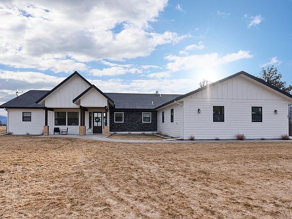 West Valley dream home! Built in 2023, this modern ranch-style home boasts incredible attention to detail, and is designed for entertaining. Situated on nearly 5 level acres in a peaceful country setting with in-your-face Glacier National Park views, yet just minutes away from all of the amenities that Kalispell has to offer. The heart of the home is the great room with vaulted ceilings, exposed beams, floor-to-ceiling windows, and gas fireplace. The chef's kitchen features an oversized refrigerator freezer combo, double oven, and hidden walk-in pantry. Step out from the dining room to the expansive covered patio and take in the breathtaking mountain views. The primary suite will blow you away with a huge walk-in closet with a second washer/dryer, dual head tile shower, two vanities, and a heated floor. The garage is oversized 3 car. Power and water ran under the paved driveway to the future shop location.