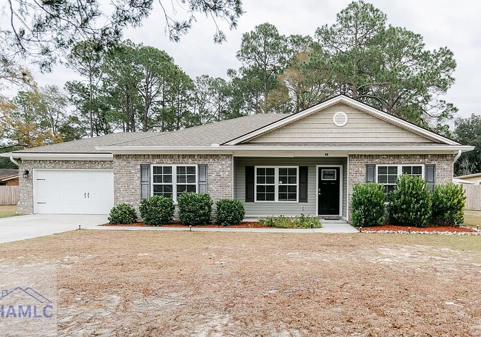 Discover this charming brick-front ranch-style home featuring 3 bedrooms, 2 bathrooms, and 1,330 sq ft of living space, perfectly positioned on a spacious 0.52-acre corner lot. Built in 2017, this home offers modern finishes and thoughtful design, making it a fantastic opportunity for any buyer. Conveniently located close to Fort Stewart, this home is ideal for those seeking both comfort and accessibility. The split bedroom plan provides added privacy, with the owner's suite boasting a tray ceiling, a walk-in closet, and an ensuite bathroom complete with double vanities and granite countertops. The gourmet kitchen is a standout, featuring granite countertops, stainless steel appliances, a breakfast bar, and a pantry, while the large dining area off the kitchen is perfect for enjoying meals or entertaining. This home's open-concept design is complemented by no carpet throughout the living areas, creating a seamless and low-maintenance lifestyle. Enjoy the outdoors on the covered front porch or in the spacious backyard, which includes a storage shed for added convenience. The two-car garage and generous driveway provide ample parking space. With its modern amenities, large corner lot, and proximity to Fort Stewart, this home is ready for you. Available for closing in mid-February, don't miss your chance to own this fantastic property. Contact us today to schedule your private showing!