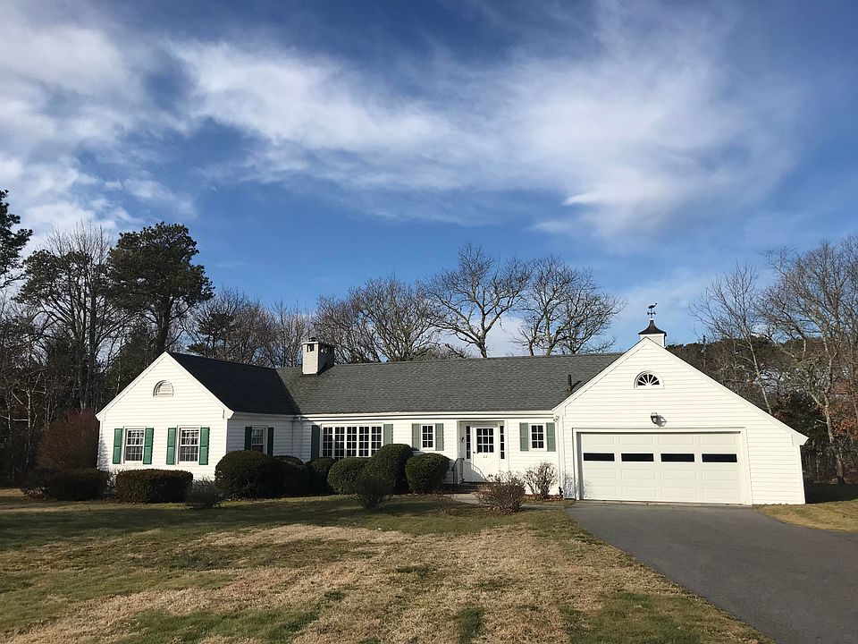 One-floor living! Stately Royal Barry Wills ranch set on beautiful .7 acre lot in Waquoit. This charming, well-maintained home boasts 3 bedroom, 2.5 bath ranch with attached garage. Great space with sparkling hardwood floors, cathedral ceiling, floor to ceiling fireplace, custom built-ins, and French doors leading out to cozy patio. First floor laundry room off kitchen .Wonderful level yard with fruit trees. Handy to Waquoit Bay, Falmouth beaches, and Mashpee Commons.