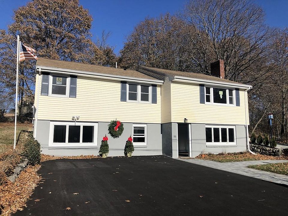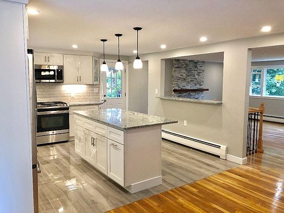 Reduced and priced to sell! Renovated to almost new construction in one of West Peabody's most desirable areas on a large corner lot that is beautifully landscaped with a shed for storage; this raised ranch with open concept floor plan, accessory apartment, state of the art gas heating system, new windows, new roof,new driveway and walkway, updated electric, recessed lighting, new kitchen cabinets with center island and granite countertops, new state of the art stainless steel appliances;sliders off dining room to a large deck;grey polished /high gloss wood plank porcelain tile in kitchen,2 fireplaces in living room on first and second level with premium grade grey split faced slate textured stone veneer, hardwood floors in living room and bedrooms, new grade wood premium plank laminate waterproof floor in accessory apt, plenty of storage and lots of closet space as well as a walk up attic. washer dryer hook ups on lower level and on second level also,