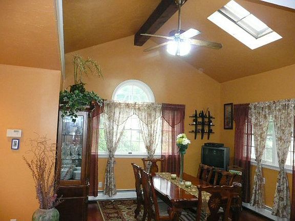 The minute you enter this stylish Ranch you will love it! Starting with the expansive family room w/vaulted ceiling & skylight which leads to a spacious level yard with custom built pergola - the fully updated eat-in kitchen has granite counters & tile backsplash. The dining room has a bay window which lets in sunshine - the living room has a wood burning fireplace along with built-in bookcases - Three bedrooms and two full baths complete this floor. There are gleaming hardwood floors throughout. Lower level finished area could be used as a second family room or 4th bedroom. Updates include central air, energy efficiency windows, heating system including hot water heater and solar panels. Conveniently located near shopping & hwy access This home has been well maintained & it shows!