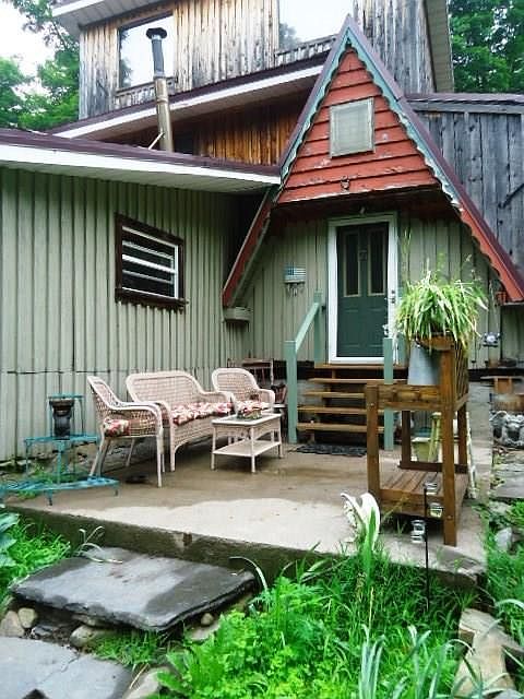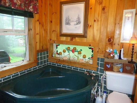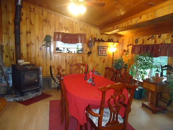 Very unique recreational property offering direct access to both the snowmobile & ATV trails. Large bath with jetted tub and separate tiled shower. Dinning room off kitchen with tongue & groove and wood stove. Large living room with sliders to back patio plus additional wood stove. Upper level is one huge room. Wooded lot with landscaped yard & a small pond. Two parcels are combined in this sale.