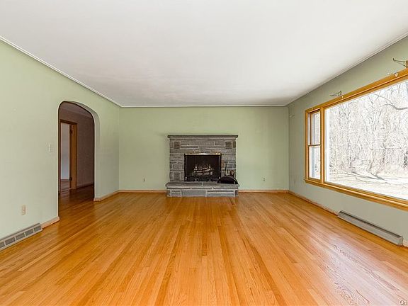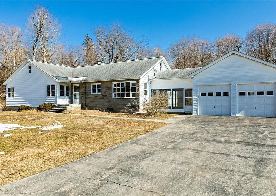 This beautiful 3-bedroom (lives like 4) Ranch style home is situated on 1-flat acre of property and located at the end of a dead-end street in the Town of Fishkill. When you arrive, you will notice a large two car garage (with new automatic door openers) connected to the house via breezeway, convenient for those rainy and snowy days. Upon entry through the front entrance, you will instantly be impressed with the gleaming original red oak hardwood flooring that has just been redone. The character throughout this home is hard to miss with its beautiful wide arched doorways and extra wide hallway. The spacious living room includes a beautiful stone wood burning fireplace, crown cove moldings and an abundance of natural light through a large picture window overlooking the private rear yard. Very large eat-in kitchen with plenty of room for cooking and tons of natural light including views of the quiet front yard. Formal dining room is perfect for hosting additional guests. Travel down the hallway where you will find a full bathroom and 3 large bedrooms each with newly redone hardwood floors and plenty of closet space. There is also an office/den on this main floor. Head on down to the basement where you will find a second wood burning fireplace & very cool bomb shelter with plenty of potential to be converted to a wine cellar or another room of your choice. The remainder of the basement provides tons of potential to be finished as extra living space if desired. The full attic offers plenty of additional storage space. Before you leave, take a few minutes outside to walk around the property and discover its tranquil and serine setting. This home is tucked away but yet conveniently located to all major highways, Metro North Trains, restaurants and shopping. This home has been meticulously maintained by its original owners throughout the years and it is now ready for its new owners to make their own wonderful memories.