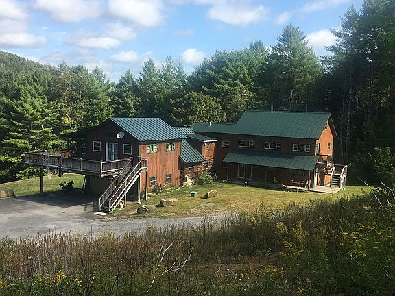 Escape to the Green Mountains in this grand cabin, in a peaceful setting. This spacious 12 room, 7 bedroom/4 bath, log cabin home is designed for a large family/gathering/event. This 5000 sq. ft. cabin sits atop 5 acres and alongside a meandering brook, offering an incredible mountain view. 5-10 minutes to all kinds of water activities. Less than 5 mins to the local coop, coffee shop, diner, Vermont Law School, and the best burger joint in Vermont. 30 minutes to Hanover/Dartmouth, and 35 minutes to Killington or Montpelier. This property has proven to be a successful, income bearing property, yielding 50K + annually.