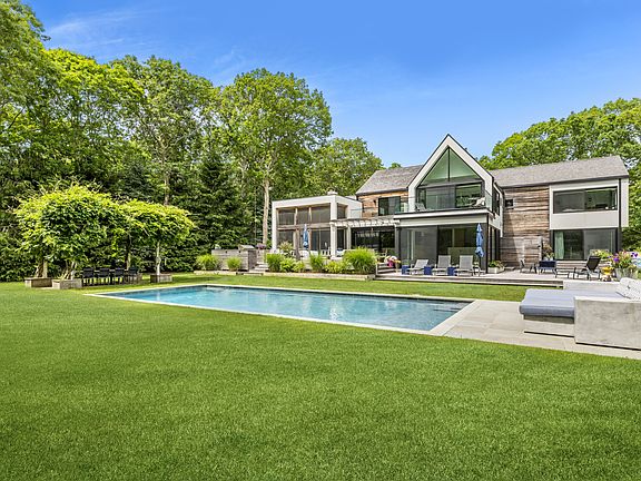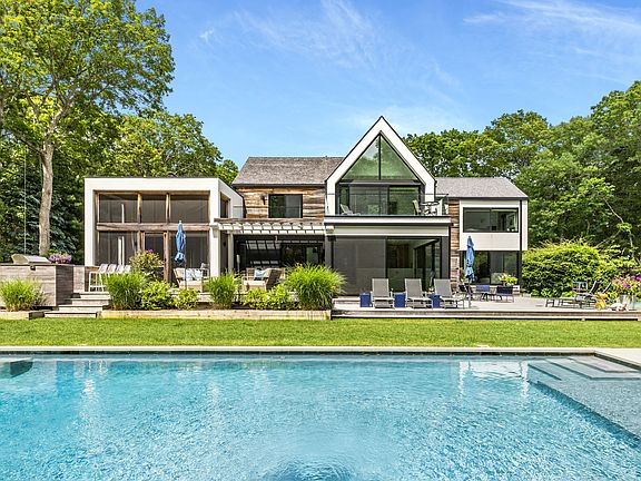 Rental Registration #: 23-728 Presenting an exquisite Hamptons-style estate that harmoniously blends the timeless charm of Traditional architecture with the sophisticated elegance of Modern design. Crafted by esteemed architects, builders, and designers, this exceptional residence embodies the epitome of Smart Technology living, catering to both entertainment and active lifestyles.The grand entrance showcases bluestone steps and lush landscaping, welcoming you into a double-height foyer. The heart of the home lies in the centrally positioned gourmet kitchen, where a luxurious double-thick marble-topped island becomes a gathering place for all. Adjacent to the kitchen you will find dining, den, and living rooms, as well as the covered porch. This remarkable estate offers seven bedrooms, including first and second-floor master suites.The first-floor primary boasts spacious walk-in closets, while the second-floor junior offers a mahogany balconys overlooking the pool and nature trail. The lower level is thoughtfully designed, featuring a stadium-seated theatre/media room, a wine cellar, nanny's quarters with a full bath and recreational rooms with a wet bar. Outside you will find gorgeous mahogany decks, a heated Gunite pool and the hard court tennis/basketball areas. Just a mere 100 feet away, a paved path leads you to the breathtaking preserved views of the backyard, ultimately guiding you to the stunning Broadview Beach along Gardiner's Bay. Available for the last two weeks of August. Contact for other rental time periods.