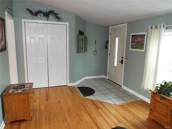 *FOR SALE*Take a look at this light & spacious ranch freshly painted w/new kitchen oak cabinets, all appliances included, a pantry, laundry /utility room,hardwood flooring in living room & kitchen/dining areas, both baths are updated w/walk-in tiled showers, large addition w/office area that has a built in desk and overlooks the great room w/exposed beams,tiled floor,coal stove and access to partially fenced backyard*Sliding glass door to deck & above ground pool from kitchen/dining area*Large pole barn 40ft x 30ft approx. w/heat,PLUS a propane permanent generator*Great location for hunting, snowmobiling, four wheeling, 3.63 acres with a pond**just a few miles north of Central Square & Interstate 81*Taxes shown without exemptions**