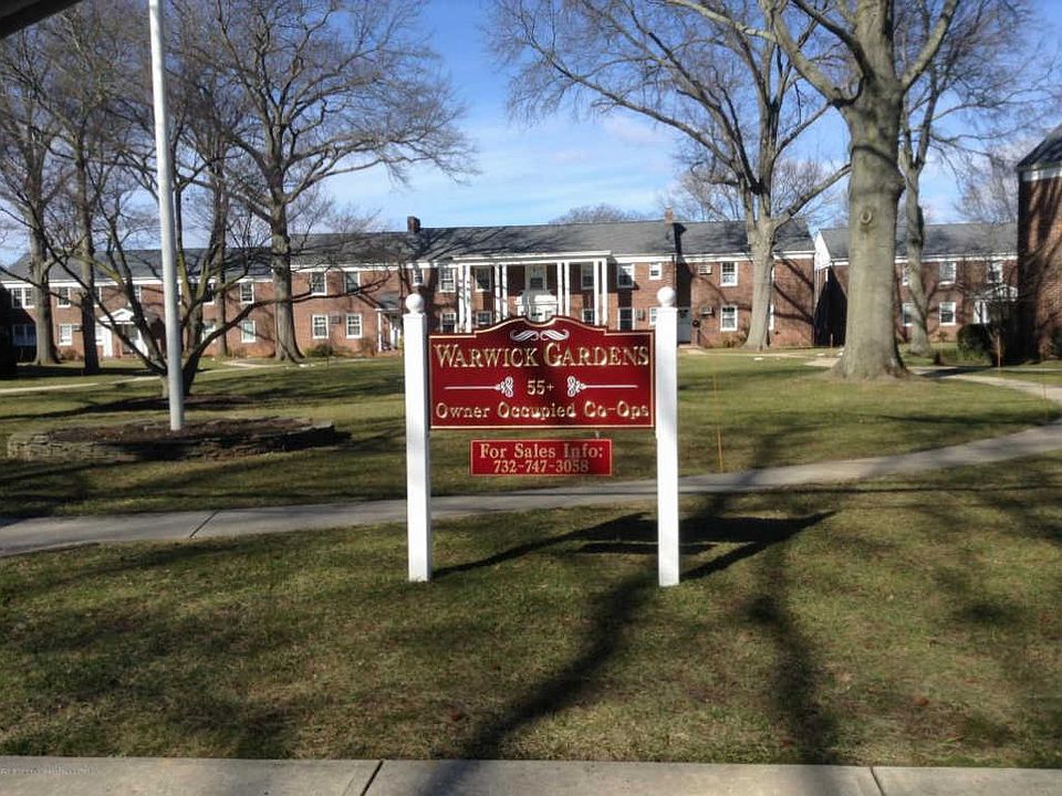 Location, Location, Location. Warwick Gardens, a 55+ Community in Red Bank is a hidden gem! Upper level Corner Co-op Unit is steps to Broad St and Convenient to All. Newer Kitchen and newer windows, featuring hardwood floors in living room and bedroom. Maintenance fee includes real estate taxes, heat, hot water, sewer, common area, fire and liability insurance, lawn maintenance, and snow removal. You pay only phone, cable, and electric. No rentals, pets, or smokers allowed. Possibility of a Quick closing.
