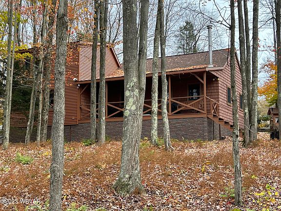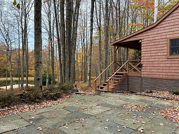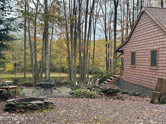 This picture perfect property is nestled in mature 6.42 acres of woods and ferns. The all season cabin Overlooks a private pond that can be enjoyed by the swing on the back porch or the patio or of course, the bench waterside! Don't miss the historical kitchen... from a Hotel in Denver PA! the woodstove warms the house or creates the perfect nook to relax. Wood plank floors, an oversized living room for visiting or watching football games all tastefully finished. 3 BR, 2 baths... this really does prove the saying wrong... YOU CAN HAVE IT ALL!