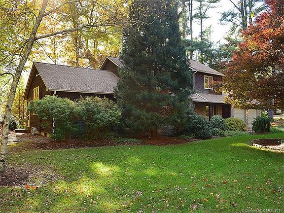 Elegant Very Special Contemporary Home with Lots of Light, Soaring Ceilings and Skylights! Many Recent Updates Including a Gourmet Kitchen with Granite Counters, Custom Cabinetry, Sliders to a Large Deck and Enclosed Attached Screened in Porch. 1st Floor Master Bedroom Suite with Cathedral Ceilings and Skylights. A Second Master Bedroom Suite on the 2nd Floor. Oak Floors Throughout. Great Room/Country Kitchen with a Fireplace. Additional Kitchenette and Huge Mirrored Studio/Fitness Center in Walkout Lower Level. Newer Furnace, Windows, and Driveway. Central Air, Mature Trees and Plantings. Babbling Brook Behind the Back Yard Woods! Lightly Wooded Yard with Shed. Cul de Sac Neighborhood Close to ECSU, Minutes to UCONN and Storrs Center. Easy Access to Walking and Hiking Trails. Lots of Space and Storage. Move Right In!