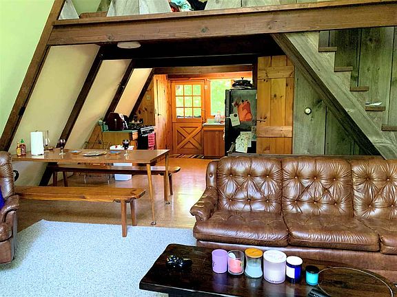 Classic A-Frame located between Stratton and Mount Snow! Two living areas, 1.5 bath, 2 bedrooms with bonus room! Private feeling spot nestled in the woods with sunny deck to relax on. Roof replaced by previous owner. This VT getaway is a must see at a great price!