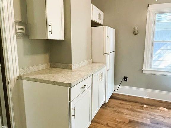Upper Monroe 2/3 bedroom apartment. Newly remodeled kitchen and bath, refinished hardwood floors and freshly painted. Vinyl windows throughout. Enjoy sitting on the private back deck. Walk to Cobbs Hill Park and the Culver Armory. Heat included. Laundry in the basement. Background/credit check, prior rental history and employment/income verification required for all applicants ($20 fee/per person). Tenant responsible for electric, internet/cable, and snow removal. Some small pets may be considered on a case by case basis with an additional monthly fee. The house is available October 2022 for $1575 per month with a 1 year lease required. Security deposit is equal to 1 months rent. Open house on Saturday September 24, 2022 10AM-12PM, no private showings before then.
