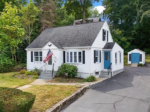 Welcome home to this beautifully renovated cape that seamlessly blends charm and modern updates. Nestled in the quiet neighborhoods of Uxbridge. With 2 bedrooms and potential for a third, this home is move-in ready and waiting for its new owner. The open floor plan effortlessly connects the spacious living room, dining area, and kitchen. Sunlight floods the living room through large windows, bouncing off of rich hardwood floors creating a warm and inviting atmosphere. The kitchen boasts sleek stainless steel appliances and recessed lighting. The updated full bath offers both style and function. Upstairs, you'll find two cozy bedrooms featuring ample closet space and additional storage in the knee walls. The freshly painted full basement includes a washer and dryer and convenient exterior access. Enjoy the private deck and backyard - quaint, quiet and perfect for relaxing or entertaining.