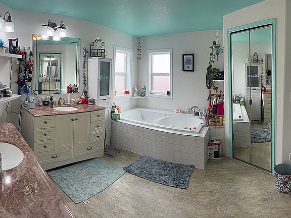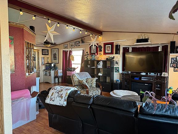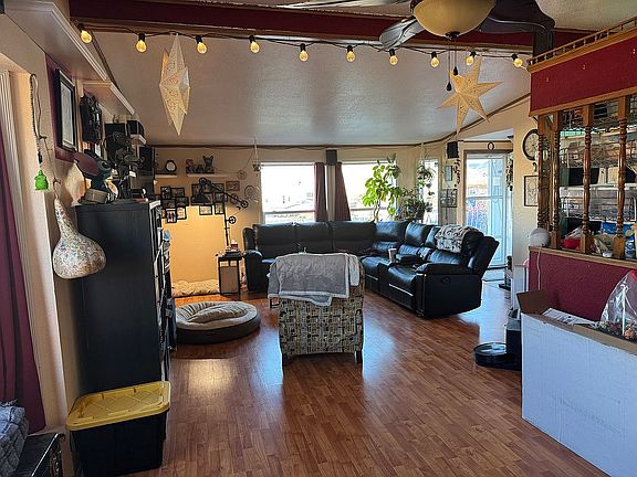 Large double-wide manufactured home with large additional room added on the back and detached garage. Property includes multiple appliances (fridge, dishwasher, microwave, washer, dryer), as well as high capacity tankless water heater and whole home water softener system. All windows replaced in the last 7 years and new metal roof installed 12 years ago. Most of the interior has been completely remodeled in the last 12 years. This is real property