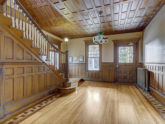 Atlantic Highlands -Gem of the Bay Shore-this small Victorian town is situated on the shore overlooking New York Bay with Manhattan in the distance. The Hills include the highest point on the Eastern seaboard and at the peak of Prospect Circle, you will find this Queen Anne home and vacant lot next door. Entering the Grand Foyer you'll be delighted with intricate wood details from the floor to the walls and the three-story staircase that continues throughout the large spacious rooms. Step through time into the magnificent parlor, additional sitting room, and the elegant dining room with coffered ceilings and built-in cabinetry with fireplace and pocket door. There are too many details to mention with stained glass windows, butlers pantry, office, rich wood colors, inlaid floors, coffered ceilings and built-in cabinetry with fireplace and pocket door. There are too many details to mention with stained glass windows, butlers pantry, office, rich wood colors, inlaid floors, coffered ceilings and built-in cabinetry with fireplace and pocket door. There are too many details to mention with stained glass windows, butlers pantry, office, rich wood colors, inlaid floors, coffered ceilings, intricate wood trim and fireplaces. Wrap-around porches to enjoy the summer breezes and multiple back balconies above. This is a 4-unit home with the main area featuring four bedrooms three bathrooms, there are two one-bedroom units with large rooms and eat-in kitchens, and a studio apartment. There is additional closet storage for tenants. You are feet away from the downtown featuring restaurants and shops, the Municipal Harbor and High-Speed Seastreak Ferry to NYC.