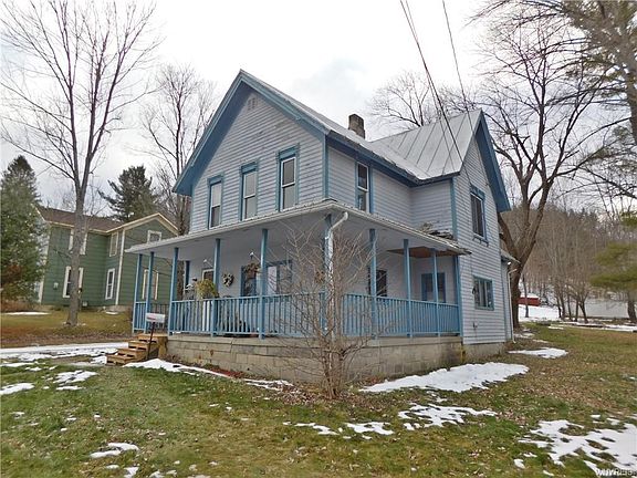 Lots of space in this charming 2 story village home on quiet street in Cuba village. Large deep backyard with 2 story garage with deck in rear! 3 nice size bedrooms-a 4th 1st floor bedroom possibility. Galley style kitchen, laundry in 1st floor bathroom. Bright dining room, living room, family room and front foyer. Wood floors throughout and some new carpeting. Good buy/investment property. Needs some tlc. Make this one your own today! List price below assessed value.