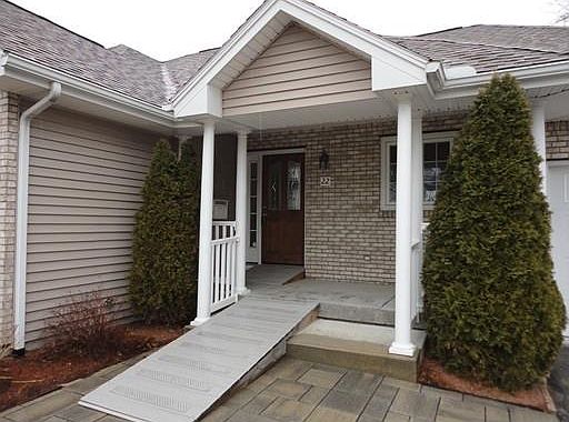 Beautiful Brick front, hip-roofed, custom built Ranch is handicap accessible! Located on a 1/3 acre corner lot, this 3 bedroom, 2 bath home features gleaming hardwoods throughout! The living room offers vaulted ceilings, a gas fireplace & ceiling fan. The dining area has a slider to the deck & is adjacent to the laundry room. Fully applianced kitchen has granite counters, a desk area & updated cabinets. The middle bedroom has french doors & can also be used as a formal dining room. The master bedroom has a gas fireplace, ceiling fan, 2 closets & a master bath with skylight, tile floor, built in cabinets, double sinks & a 4 foot shower with seat & glass door. The 3rd bedroom was used for live-in help & is located next to the guest bath which has a tile floor & skylight. The walk-out basement is unfinished & provides plenty of storage. Central air, central vac, economical gas heat & hot water! 2 car garage with shelving & a rear access door. Close to highways & shopping!