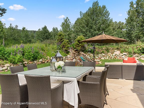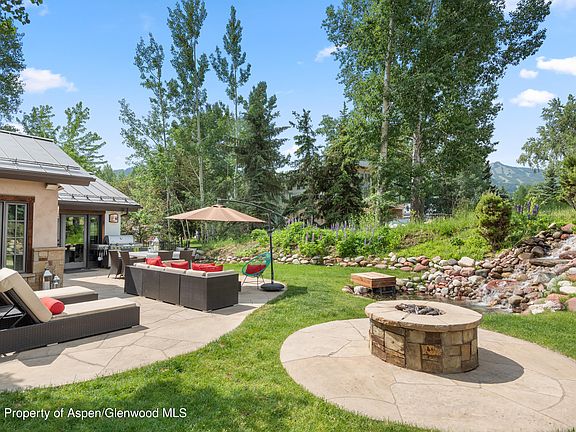 Perfect home for your next mountain getaway. Well maintained and beautifully furnished 5 bedroom home located across from the Aspen Golf Course and tennis Courts and just minutes from downtown Aspen and world class skiing. The main open floor plan is ideal for gathering and opens up to the outdoor space, which is a little slice of heaven with the soothing sounds of the water feature, 8 person salt water hot tub, gas firepit and mountain views. The home lives on three levels: the top floor has two bedrooms with a shared bathroom; the main level hosts the living spaces and master bedroom, which is complete with walk-in closets, double vanity, jacuzzi tub and steam shower; and the lower level is complete with two more bedrooms, a media room, wardrobe room and full bathroom.