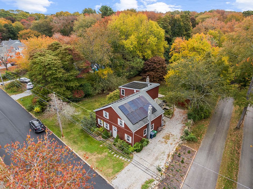 This charming 1890 Colonial features approximately 1964 square feet of living space with four to five bedrooms and two full bathrooms. The interior has a very nice neutral color palette, an abundance of natural light a spacious layout and beautiful wood floors throughout. The remodeled kitchen is very well-appointed, featuring ample counterspace and cabinets, center island, and stunning solid surface counter tops. The formal dining room is large and inviting, The living room showcases a charming brick fireplace and the family room features a woodstove, creating a cozy and inviting atmosphere for chilly days and nights. The primary bedroom is generously sized, flooded with natural light and provides a full bathroom/ensuite. The additional three bedrooms are also upstairs. Stepping outside enjoy the large deck, fish pond, perfect spaces for outdoor relaxation and entertaining. The home sits on a wonderful half acre lot and boasts plenty of beautiful lush landscaping surrounding the property enhances the overall character and curb appeal of this coastal dwelling. Situated in the quaint coast town of Waterford a short distance to beaches and parks offering the residents an opportunity to enjoy the peaceful and picturesque location. The combination of the the charming farmhouse aesthetic and the comfortable, well-appointed interior make this a property an ideal choice for those seeking a serene living experience. Solar panels are leased.