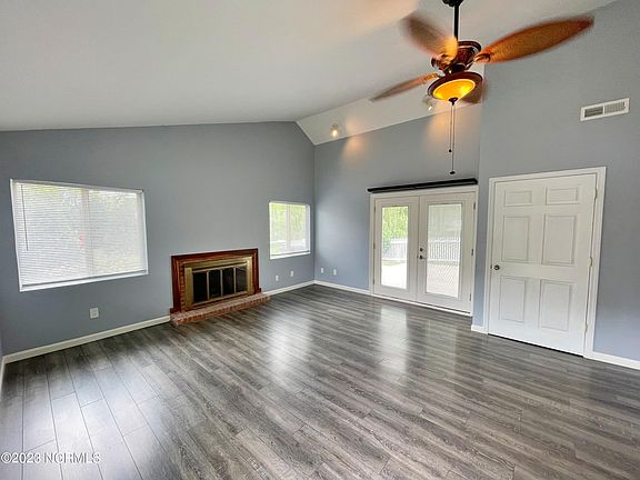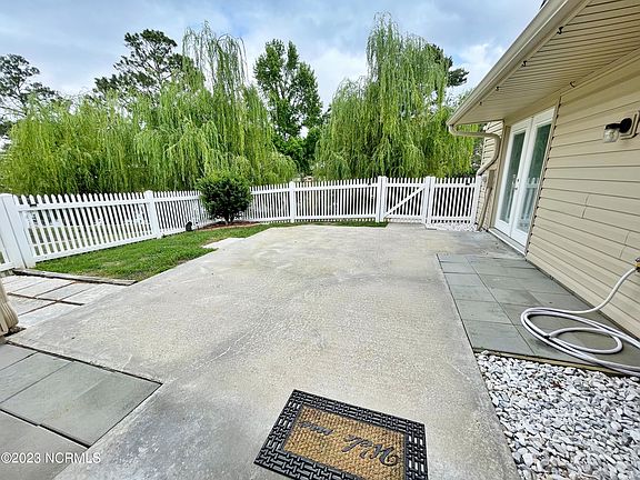 THIS IS THE BEST AND YOU CAN FORGET THE REST! Step into the best Quarterdeck you have ever seen. This single level waterfront end unit has been extensively remodeled and has added features that really make it stand out! This open design home offers a very spacious living area with soaring ceilings and a wood-burning fireplace. The dining area has unique beveled glass divider. The adjacent kitchen has a custom Western Carolina Walnut Bar and a newer Moen faucet, tile backsplash and a stainless farm-style sink. The garden window with tile accents offers tons of light and is the perfect place for displaying plants. The primary suite offers a a private bath with walk-in shower and a walk-in closet. There is also a guest bedroom and full guest bath. Additional updates are Schlage nickel locksets on all exterior doors, new water heater, new kitchen cabinets and multiple fixtures. Outside you will find a white-picket fenced yard and patio overlooking a gorgeous waterview. The impeccable landscaping goes on and on. Flower gardens, garden ornaments, Plum tree, Leland Cypress, Knockout Roses and a custom added front spigot, not present in other QD units. Raised beds in place for your next garden.