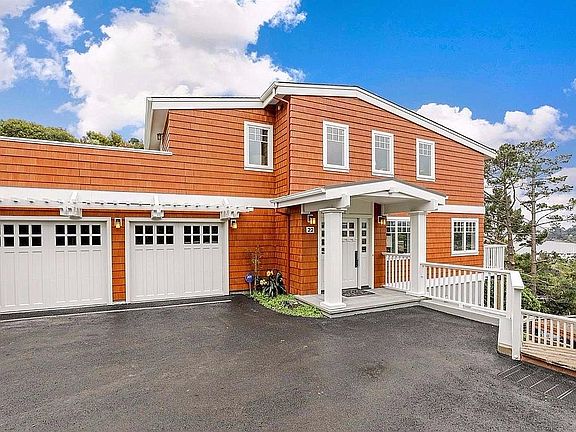 Spectacular remodeled Old Tiburon home featuring Bay views. Meticulously updated throughout, this 3BR/2.5BA home has a spacious kitchen featuring a large calcatta marble center island, soapstone counters and SS appliances. Upstairs a spacious master suite features a large walk-in closet and a gorgeous ensuite bath. Multiple view decks in front and a large bluestone patio and adjacent, flat grassy yard in back. 2 car garage. New master bedroom AC and new sewer line. Plans for 1000+ sq ft addition.