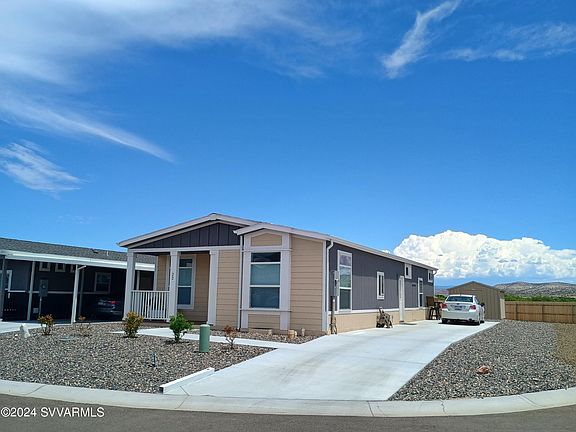 Welcome home to the beautiful Verde valley. Be surrounded by Mountains, red rock views and the Verde River. The 9 ft. coffered ceilings in the living room and master bedroom add an element of elegance to this 3 bedroom, 1 & 3/4 bath home. Celling fans throughout and a collegian soft water system. The spacious kitchen has upgraded stainless steel appliances. Live the vacation lifestyle every day, enjoying the Amazing Amenities maintained by the community. 10,000 sq ft club house with heated pool and hot tub. Verde Ranch Estates is adjacent to an undeveloped state park a short walk away. Premium Lot lease is $645 monthly. Must go to http://verderanchestates.com to apply and pass background check.
