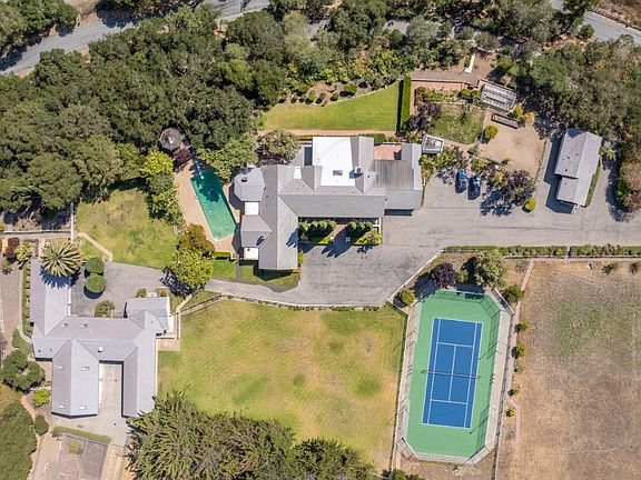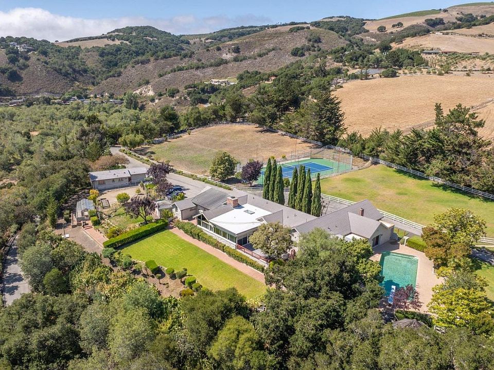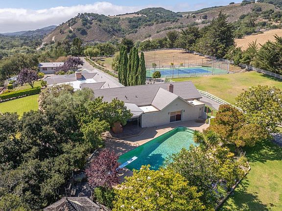 Welcome to the Darwin Estate, where old world elegance meets a historic ranch style home nestled among 22.8 acres in desirable Carmel Valley. This is a unique opportunity to own the crown jewel of Miramonte. Once a world class Thoroughbred breeding farm, these gently sloping and south facing pastures await your dreamscape. Whether you are an auto enthusiast, boutique vintner, or dedicated equestrian, this property features breathtaking views of the Santa Lucia mountains along with an abundance of water! The estate includes 4 bedrooms, 4 full bathrooms, and 3 half bathrooms, complemented by a pool, spa, tennis court, and a green house, catering to a lavish lifestyle. The property also includes a guest house with 2 bedrooms and 1 bathroom, a studio with 1 bedroom and 1 bathroom, and ample space in a separate 4 car garage/ multi-purpose building.