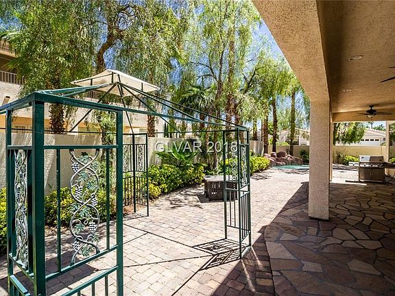 Beautiful 5 bed, 4 bath located in guard gated Rhodes Ranch. Gorgeous marble flooring throughout. Kitchen with granite counters. Family room has stone fireplace & wet bar. High ceilings. Separate formal dining & living room area. Master bedroom with separate retreat room, fireplace & huge master bath with separate shower & tub. Bedroom downstairs with attached bathroom. Private backyard on corner lot with beautiful mountain and golf course views!