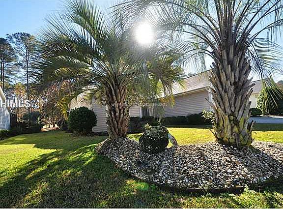 The setting of this lovely home is exceptional in several ways. It is sited on a double cul-de-sac street and on a golf lot that is also a garden. Gorgeous. The home is walking distance to the Okatie Creek Clubhouse and a one-minute drive to Town Center. The kitchen boasts stainless steel appliances and granite counter tops. Both baths have been recently tiled. The back of this home is magnificent. It is both garden and golf. The patio has been expanded by a large paver-addition, perfect for a barbecue and roomy seating. One-year warranty conveys to the buyer. Now, go enjoy that view.