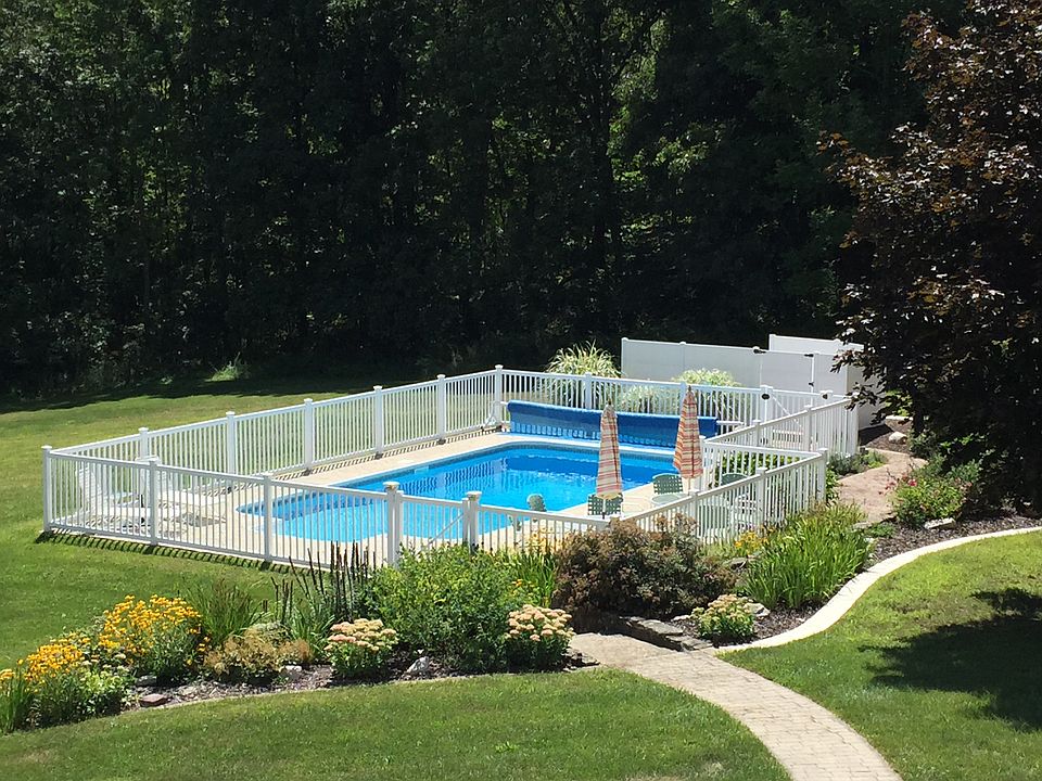 Original owners have taken great pride in maintaining this private oasis set upon 5.5 acres in the Minisink Valley School District. Updated features include a stunning kitchen with cherry cabinets, top of the line stainless appliances, and a large eat-in breakfast bar. Formal dining room for entertaining and celebrating holidays and life's milestones. There's also a living room, family room with sliding doors to the outdoor patio, laundry room and bathroom on the first floor. Upstairs there is a large master bedroom suite with walk in tiled shower, jacuzzi bathtub, and oversized walk in closet with bonus dressing room. Two additional bedrooms and full bath on the second level. Additional 1216 sq. ft. finished lower level with workout room, office, home theatre with eight recliners and full bath. Pristine landscaping, in-ground heated salt water pool with two patios. Detached two story garage with ground level entrance around back for equipment storage. Within commuter distance to NYC.