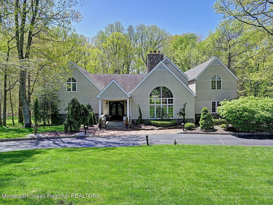 Luxury living at its finest is the best way to describe this one of a kind, spectacular home in the heart of beautiful Holmdel. This impressive home will take your breath away from the moment you walk through the brand new iron double front doors into the magnificent two story foyer until you walk out the finished lower level into your private retreat, backing up to protected land. Plenty of usable space in the large, open, level back yard. 6 bedrooms on the first 2 levels and an additional 2 in the lower level, which is complete with kitchenette, fireplace, gym, billiards room and two living rooms. Perfect for additional house guests with its own walk out entrance. Radiant heat throughout (including lower level and garage). 4 Zone AC First floor boasts two story entrance leading into two story dining and living rooms. The kitchen is fully equipped with granite countertops and top of the line appliances, including a newly installed Bosch 5 burner cooktop in the horseshoe shaped island. Gorgeous, newer wide plank flooring on first level, 2 fireplaces on 1st level and 1 fireplace in lower level. Walk in closets in 5 of the 6 bedrooms, each of the bedrooms are oversized and have their own full bathroom. Master bathroom is recently renovated and includes beautifully crafted ceramic and glass tile, river rock flooring in multi jet shower, vessel sinks, television and U-line refrigerator. Circular driveway, built in wet-bar, au pair suite with private entrance and many more amenities. 25 windows brand new replaced within past 2 months. House is immaculately kept...a must see. OWNER IS LICENSED NJ REALTOR
