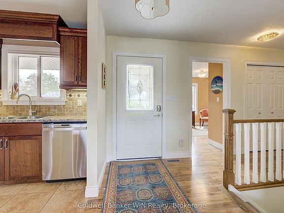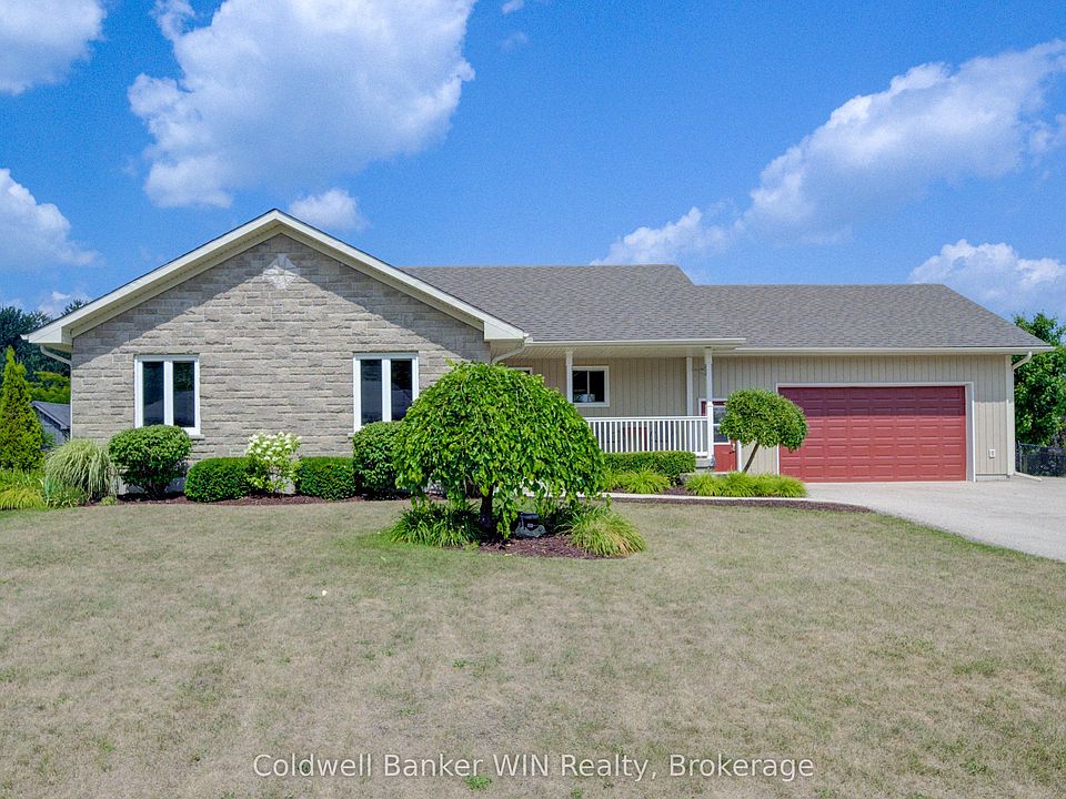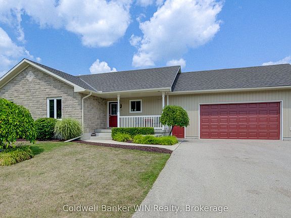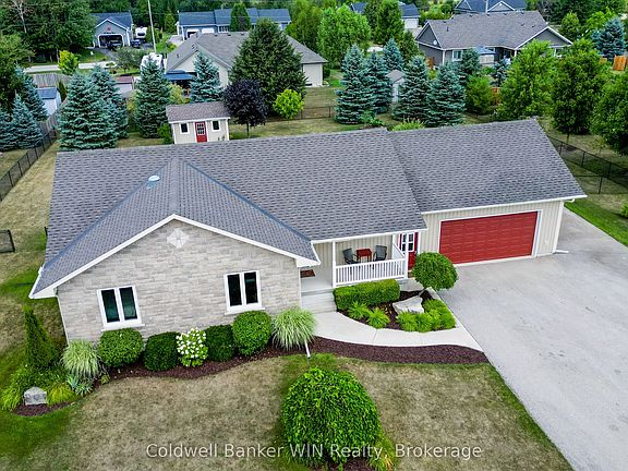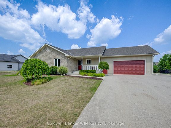 Just minutes from Mount Forest and Harriston, this stunning 3+1 bedroom, 3-bath bungalow offers the perfect blend of rural charm and modern convenience. The open-concept main floor features a bright living room, kitchen, and dining area, with the dining room offering a seamless walkout to the back deck ideal for BBQs and entertaining. The large custom kitchen features a walk in pantry as well as a very large island perfect for morning breakfast on the go, entertaining or cooking/baking. Hardwood and tile floors run throughout the main level, adding warmth and elegance. The main floor also includes a spacious laundry room and a newly created mudroom off the garage for added functionality. The primary bedroom boasts a walk-in closet and a private ensuite, while two additional bedrooms and a full bathroom provide space for family or guests. The finished basement expands your living space with a large 4th bedroom, a 3rd bathroom, and an oversized family room that could easily be divided into an extra bedroom, bar area, or gym. A dedicated storage room and an organized utility room keep everything in its place. Outside, the beautifully landscaped backyard offers a deck, a sitting area, and a shed, all on a generous half-acre lot perfect for play, gardening, or relaxing in your own private oasis. This estate-style home delivers all the luxuries of a country subdivision without the million-dollar price tag. This cost friendly luxury home has everything you want along with the price you desire!