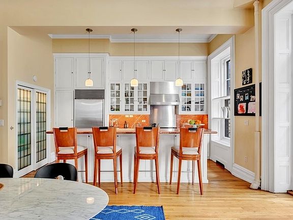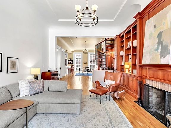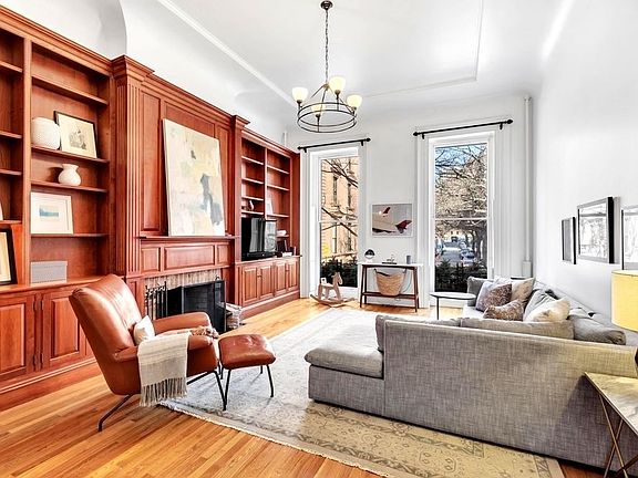 Classic Brooklyn Heights Brownstone Living only steps from The Promenade. This extraordinary 2-Bedroom parlor floor duplex, in a 25-foot wide brownstone, is truly one-of-a-kind. The location and the grandness of the rooms make this duplex an exceptional property. Perfect for entertaining, a grand entry parlor floor welcomes you and your guests with its vast wall of cherrywood built-ins (one set of doors featuring a working dumbwaiter), two wood-burning fireplaces and a picturesque spiral staircase leading you to the bedrooms situated upstairs. The elegant space easily allows for a formal dining area and an oversized living room. There is a also a half bath located on this level. Traverse up the beautiful spiral staircase and enter the private upper-level of the duplex, which features two enormous en-suite bedrooms, each with its own wood burning fireplace and marble bathroom. The large master bathroom has both a shower and a tub, a private toilet and closet with a stacked washer/dryer. The custom designed chefs kitchen features top-of-the-line stainless steel appliances, sub-zero refrigerator, an oversized eat-at bar. Just off the kitchen, there is a balcony that allows access to the landscaped garden, showcasing a gorgeous cherry blossom tree. The garden has a dividing wall allowing privacy between the Parlor unit and the Garden unit. (see floor plan not shown in photos) There is central air throughout, heat and hot water included. Pets considered on a case by case basis. Please contact agent for a private appointment.