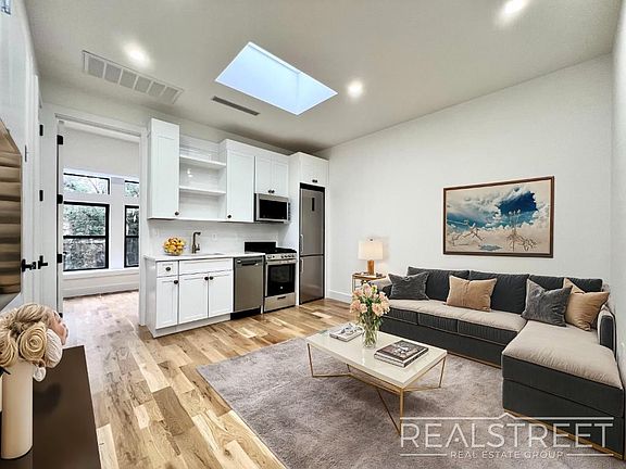 Welcome to 22 Revere Pl, an exquisite residence in a fully renovated & charming brownstone in North Crown Heights. This luxurious three-bedroom offers an open-concept kitchen equipped with modern white shaker cabinetry, large stainless steel appliances including a DISHWASHER, microwave, Quartz Carrara counters, and a large skylight. Hardwood wide plank white oak floors throughout the apt, tall ceilings, and recessed LED lighting. Three generous size bedrooms all feature large closets, two of them have 3 stunning extra large windows and the third features a sunny skylight. The modern bathroom features matte black accents paired with an extra wide white vanity. Located on a picturesque tree-lined block near Brower Park and the Brooklyn Children's Museum, this residence offers a prime location with access to an array of amenities and easy access to the 3 and C trains. Indulge in the perfect blend of elegance, comfort, and convenience. Live a life of luxury in this extraordinary residence, where every detail has been thoughtfully designed for an unparalleled living experience.